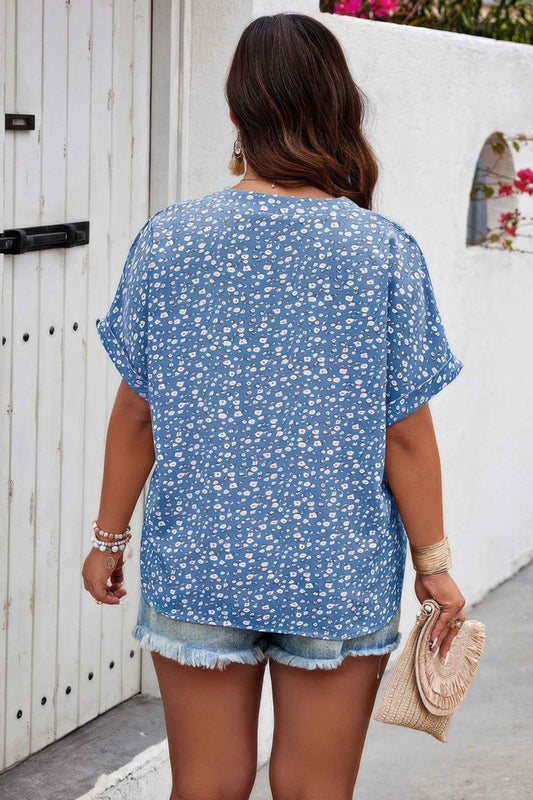 Plus Size Floral Notched V Neck Short Casual Blouse – New Arrival Now Live
