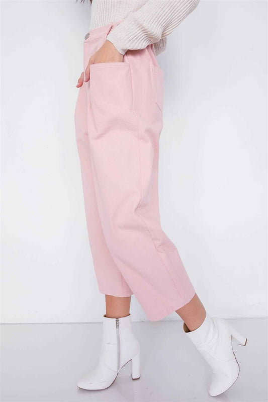 Pastel Chic Solid Ankle Wide Leg Adjustable Snap Waist Pants