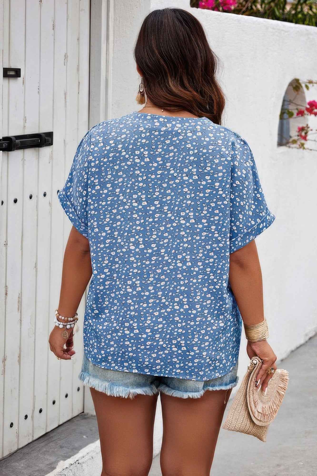 Plus Size Floral Print V Neck Short Sleeve Blouse – New Arrival Now Live